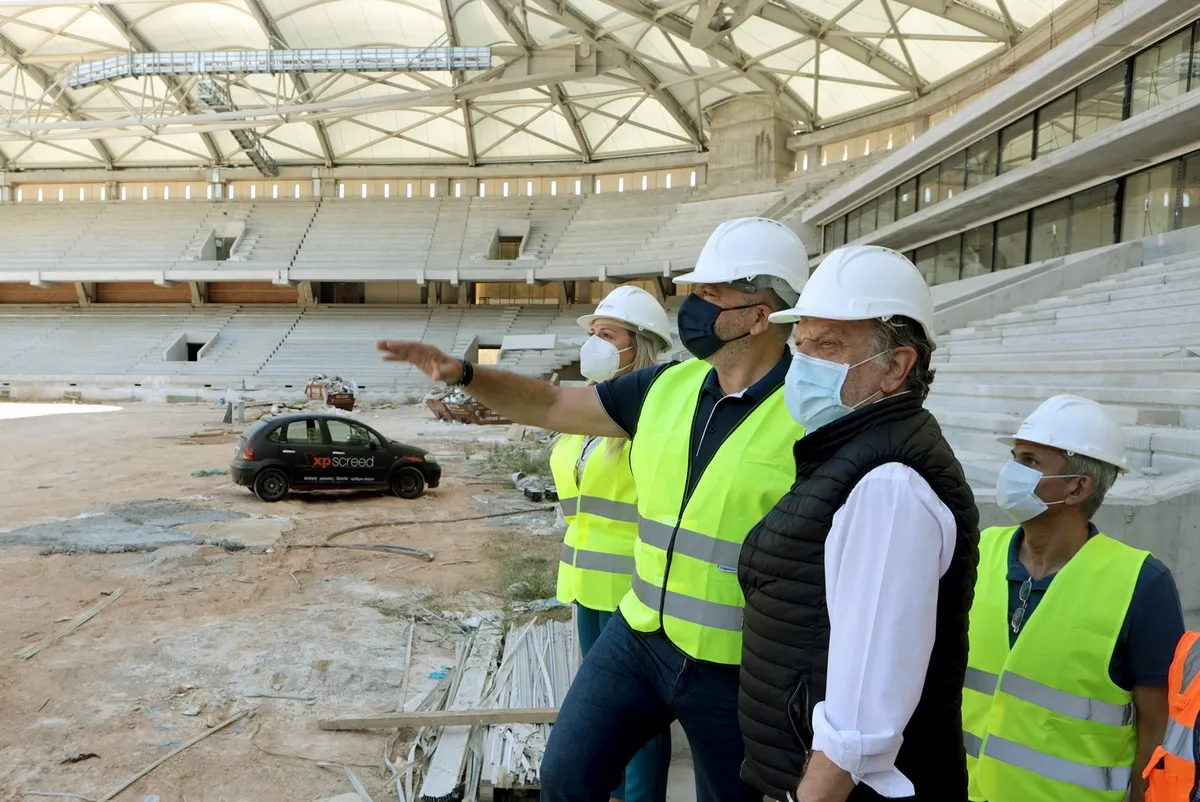 Μελισσανίδης, Πατούλης και Βούρος επιβλέπουν την πορεία των εργασιών του γηπέδου της ΑΕΚ
