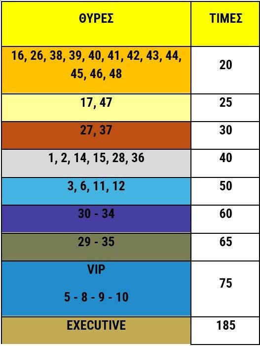 Αναλυτικά οι τιμές των εισιτηρίων ανά θύρα: