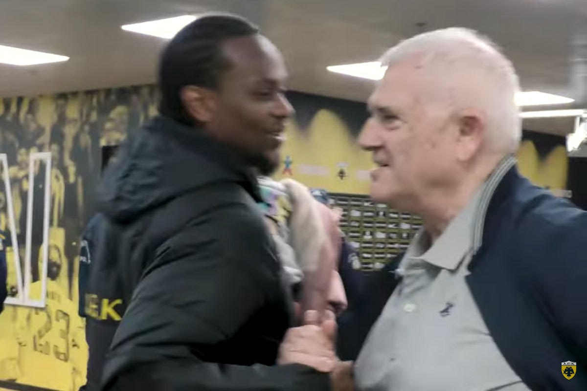 Επίσης η κάμερα των “κιτρινόμαυρων” κατέγραψε τον Δημήτρη Μελισσανίδη στα αποδυτήρια να περιμένει τους ποδοσφαιριστές της ΑΕΚ και να δίνει σε έναν-ένα συγχαρητήρια.
