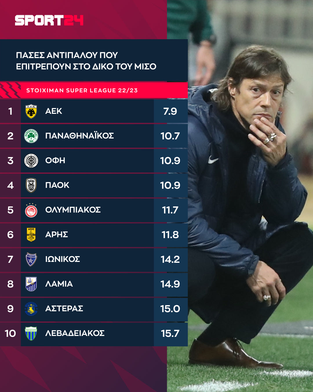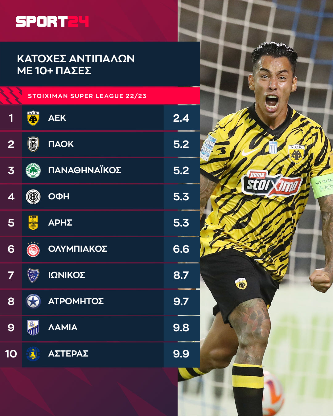 Η ΑΕΚ έκανε κάτι εξωφρενικό. Επέτρεψε στους αντιπάλους της να αλλάζουν 10 ή περισσότερες πάσες μόνο 2.4 φορές ανά παιχνίδι.