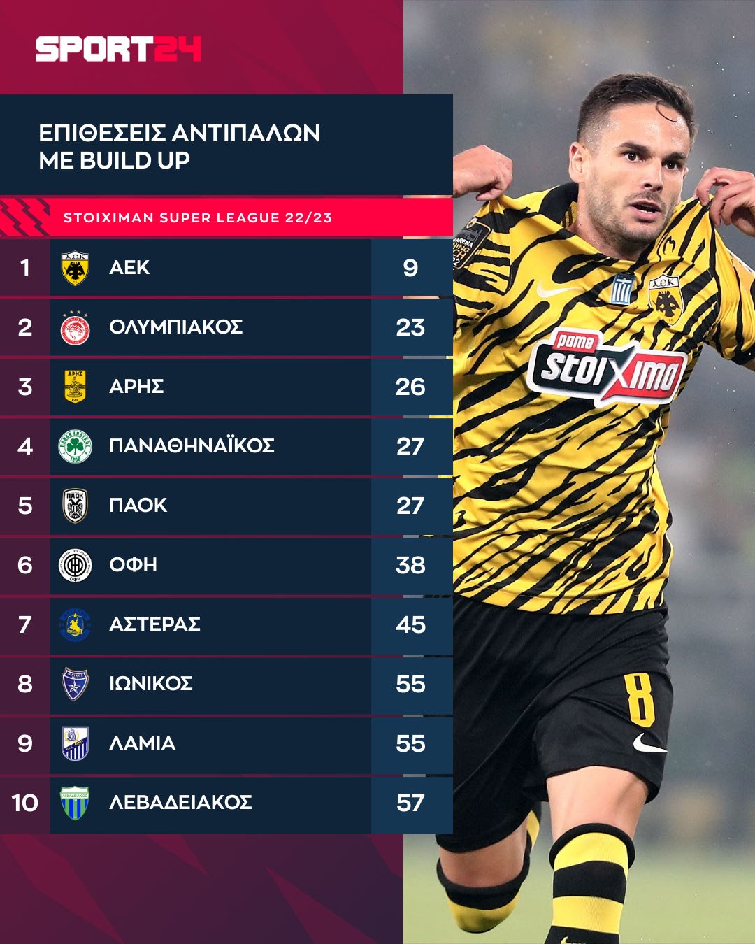 Οι επιθέσεις με build up που δέχθηκαν οι ομάδες στη φετινή Super League