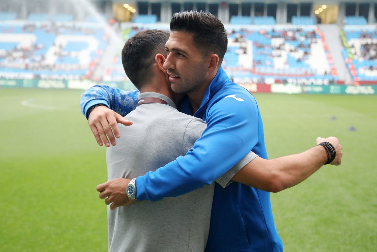 Μάλιστα, ο αρχηγός της Εθνικής δεν έχασε την ευκαιρία να έχει ένα σύντομο τετ α τετ με τους παίκτες και τους ανθρώπους της ΑΕΚ, στην οποία αγωνίστηκε επί μία τετραετία (2015-2019).