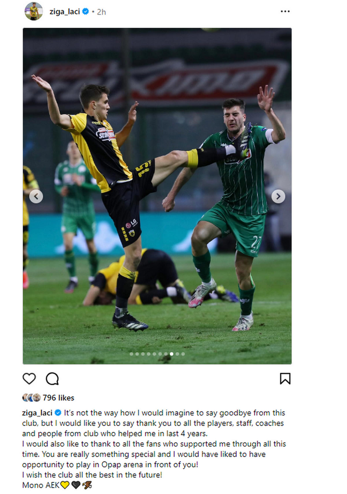 Το δικό του "αντίο" μέσα από ένα ποστ στα social media είπε στην ΑΕΚ και στους φιλάθλους της ο Ζίγκα Λάτσι, καθώς από το μεσημέρι της Τετάρτης (31/1) ο Σλοβένος και η Ένωση ακολουθούν χωριστούς δρόμους.
