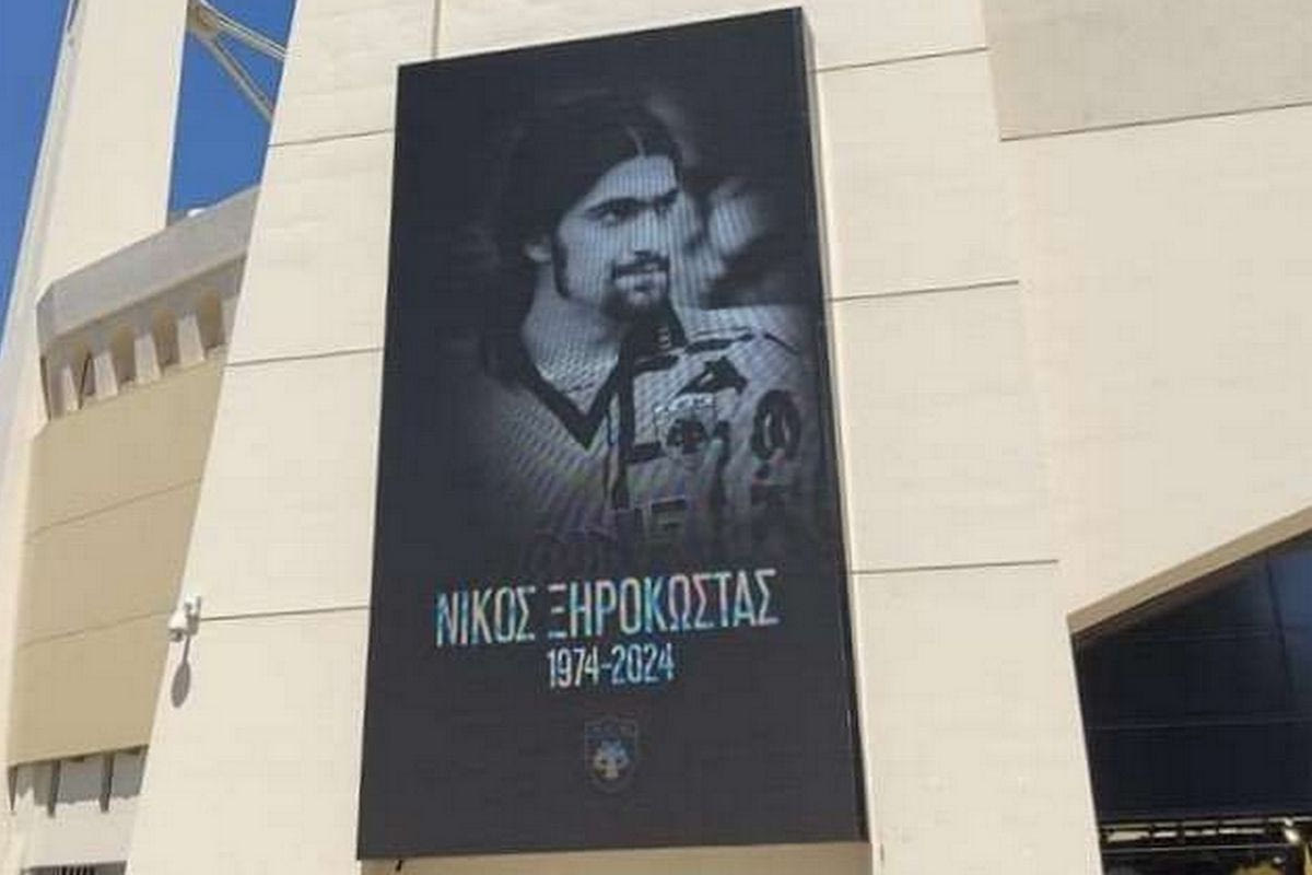 Θέση στην OPAP Arena πήρε ο Νίκος Ξηροκώστας, με την ΑΕΚ να τιμά τον banner στα εξωτερικά matrix του γηπέδου τον εμβληματικό οπαδό της ομάδας.