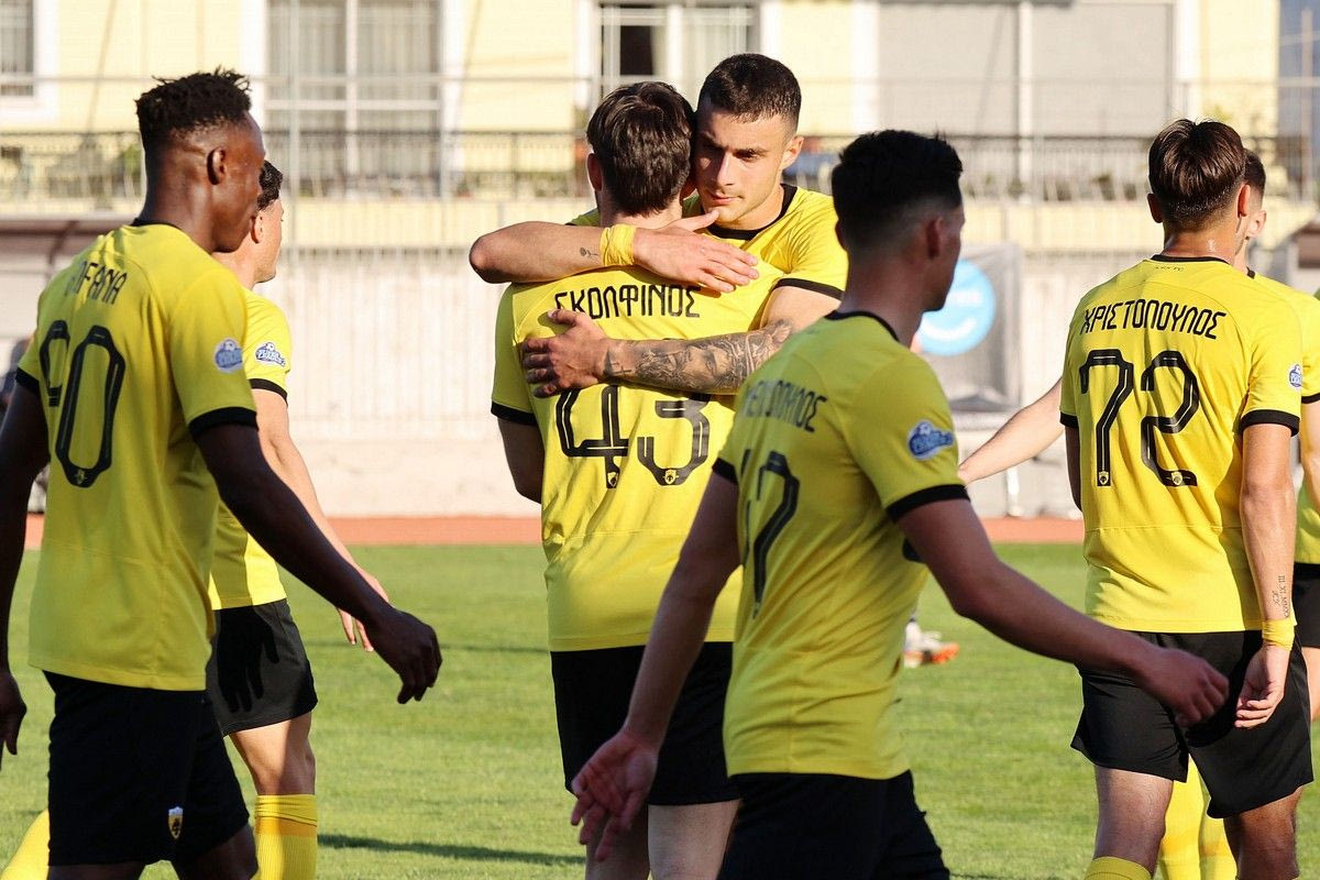 Οι παίκτες της ΑΕΚ Β' πανηγυρίζουν γκολ που πέτυχαν στη Super League 2 INTIME SPORTS