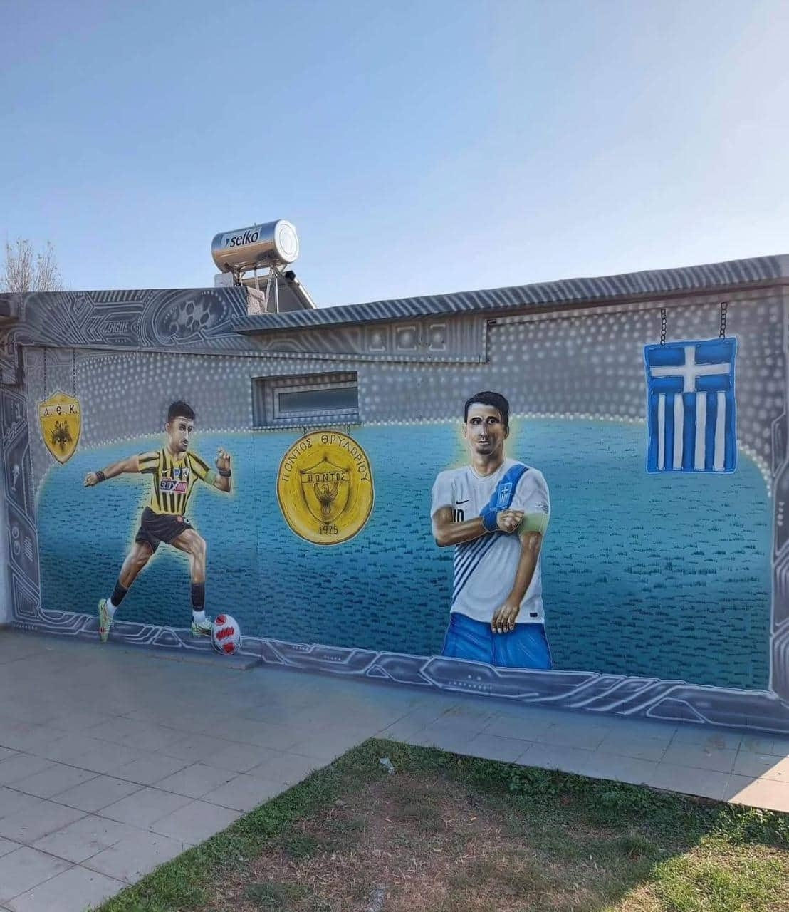 Ο Πέτρος Μάνταλος έγινε γκράφιτι στο γήπεδο του χωριού του στην Κομοτηνή, με τους ανθρώπους της ομάδας Πόντου Θρυλορίου να τιμούν τον αρχηγό της ΑΕΚ.