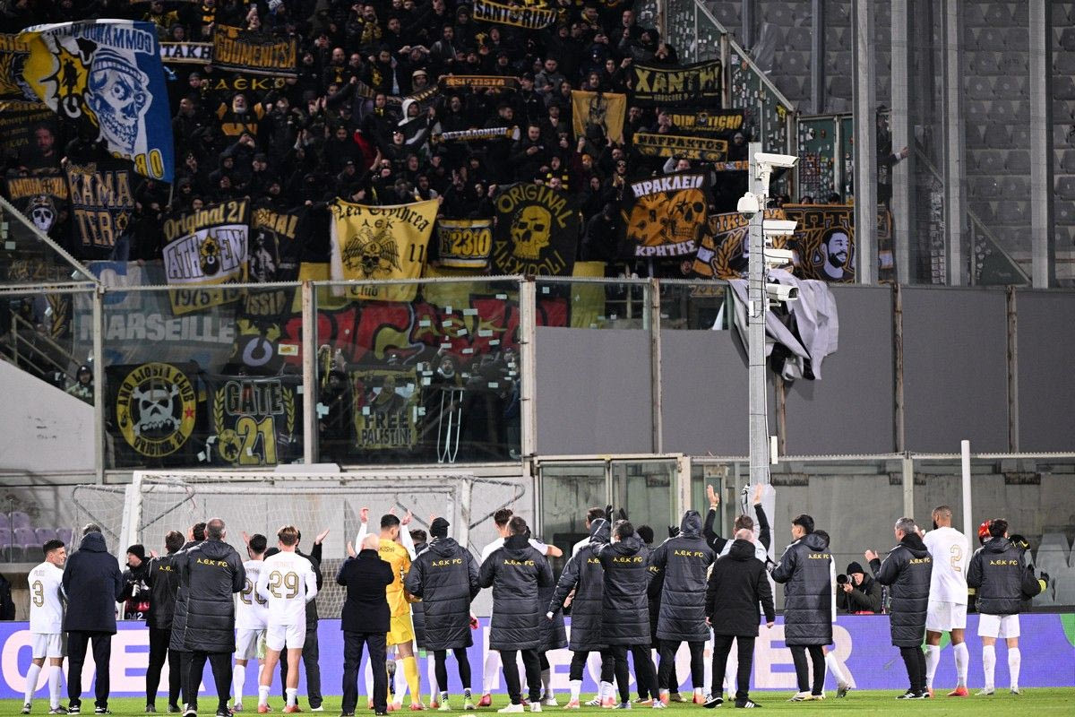 Η ΑΕΚ πήρε σπουδαία νίκη κόντρα στη Φιορεντίνα, η οποία είναι και η πρώτη νίκη της επί ιταλικού εδάφους στην ιστορία της. Οι παίκτες του Μάρκο Νίκολιτς πανηγύρισαν με τους οπαδούς το μεγάλο ματς, καθώς κινήθηκαν προς το πλευρό τους και τους χειροκρότησαν ενώ οι οπαδοί τους αποθέωσαν.