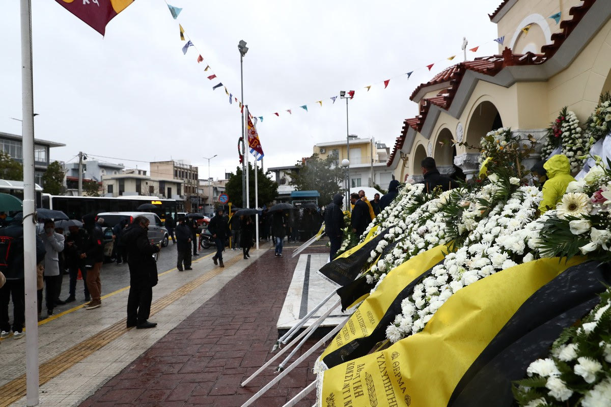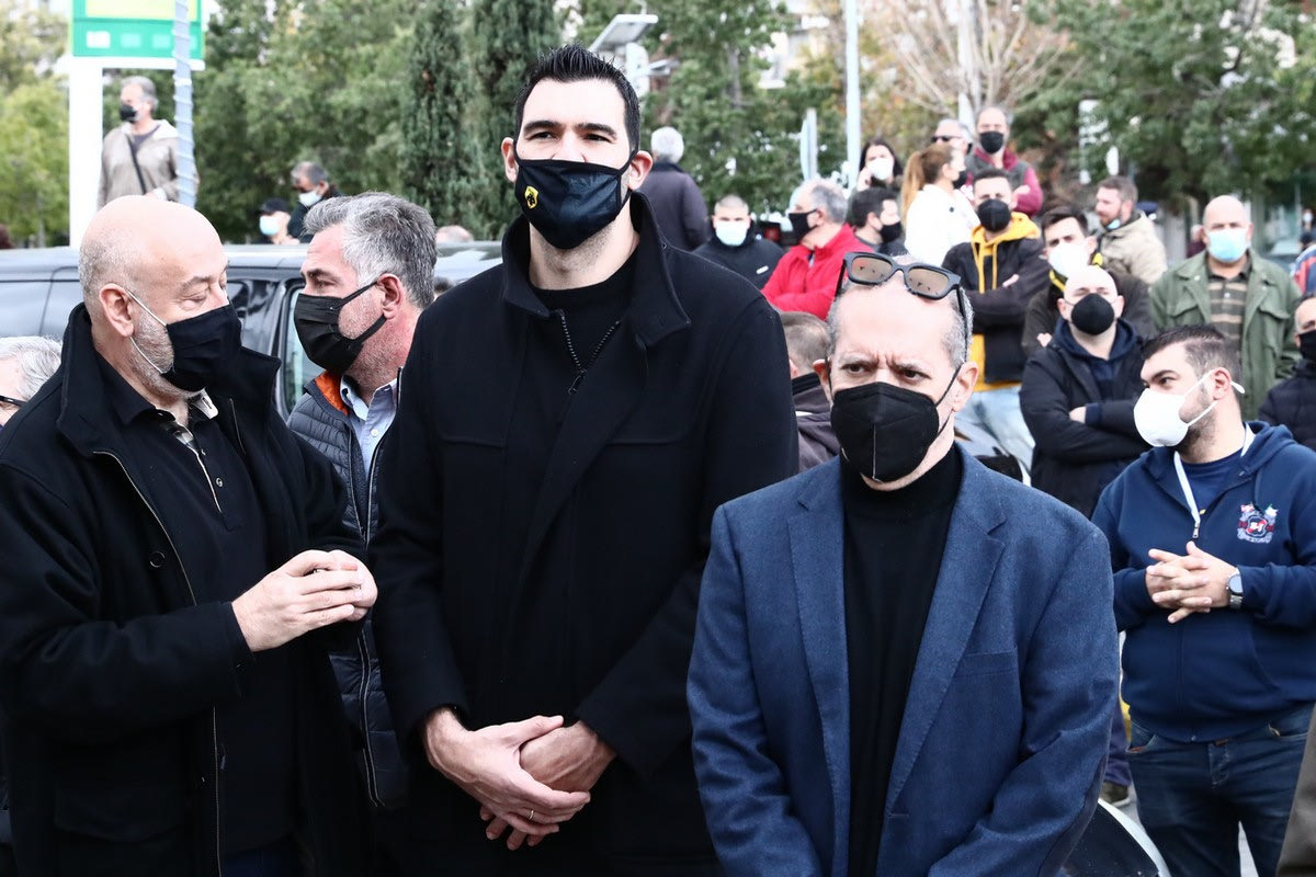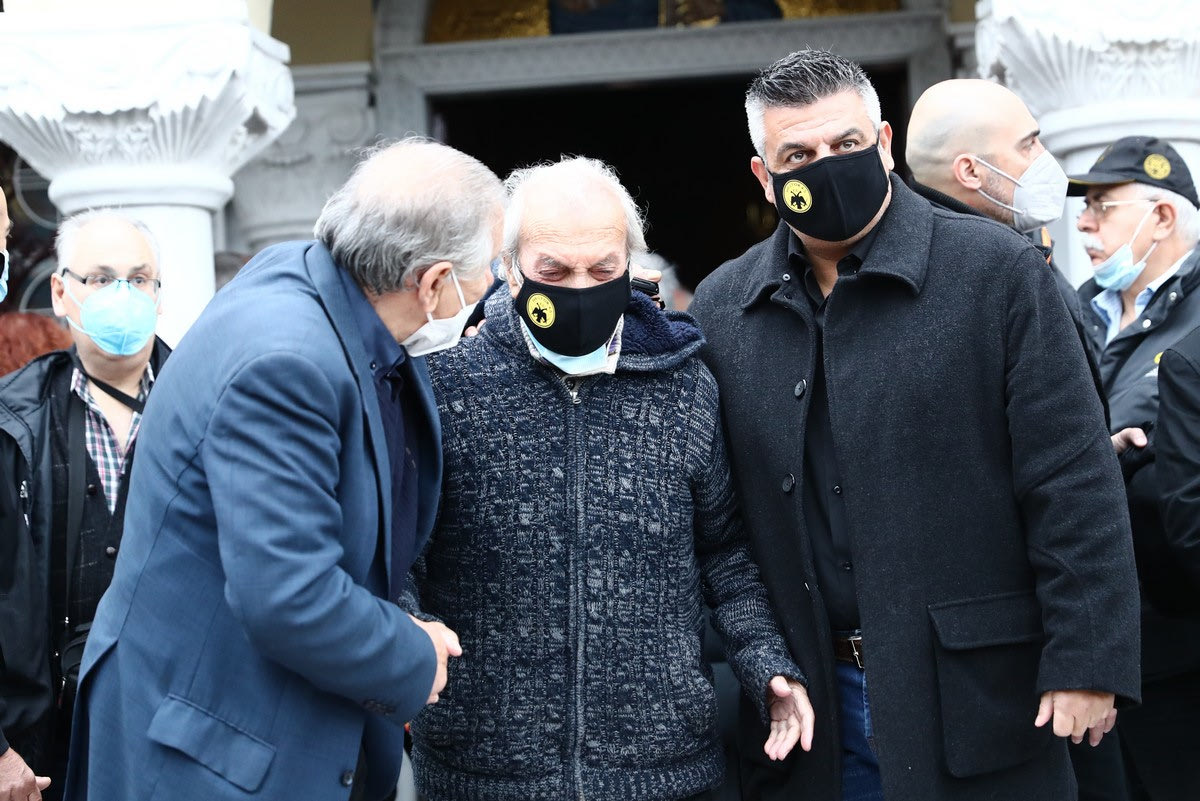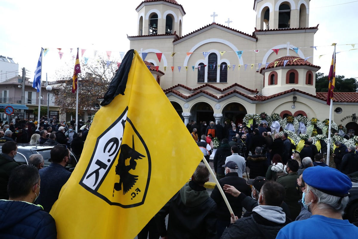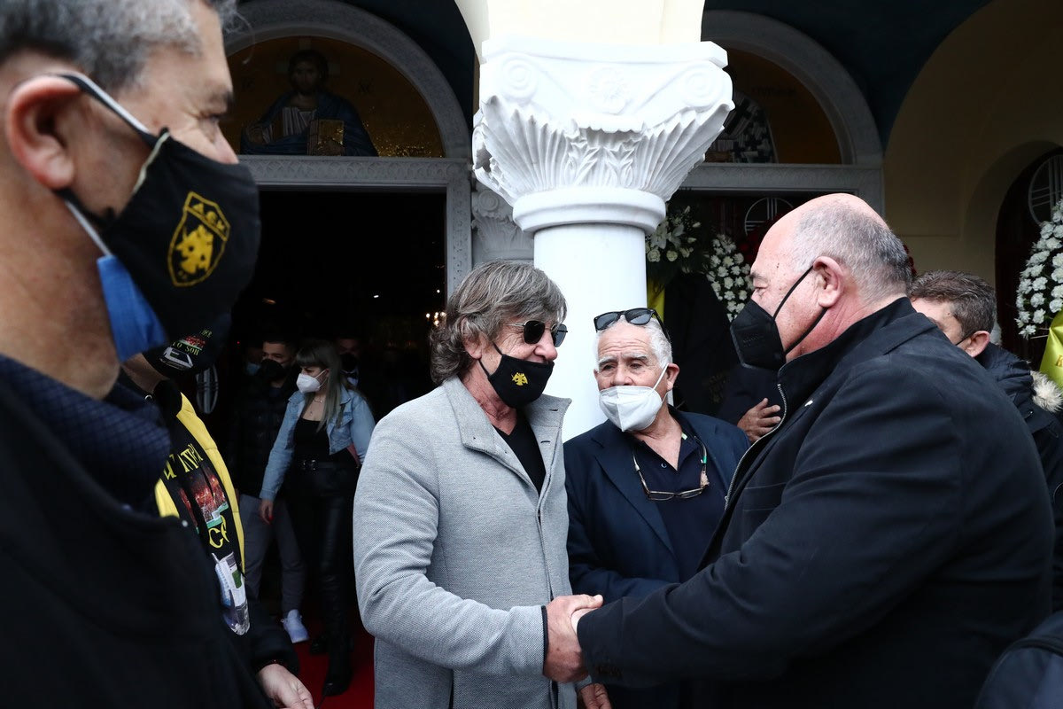 Από εκεί και πέρα, στο ύστατο χαίρε ήταν ολόκληρη η ΑΕΚ. Συμπαίκτες του, παλαίμαχοι, ο ισχυρός άνδρας της κιτρινόμαυρης ΠΑΕ, Δημήτρης Μελισσανίδης, αλλά και ο δήμαρχος Νέας Φιλαδέλφειας/Νέας Χαλκηδόνας, Γιάννης Βούρος.