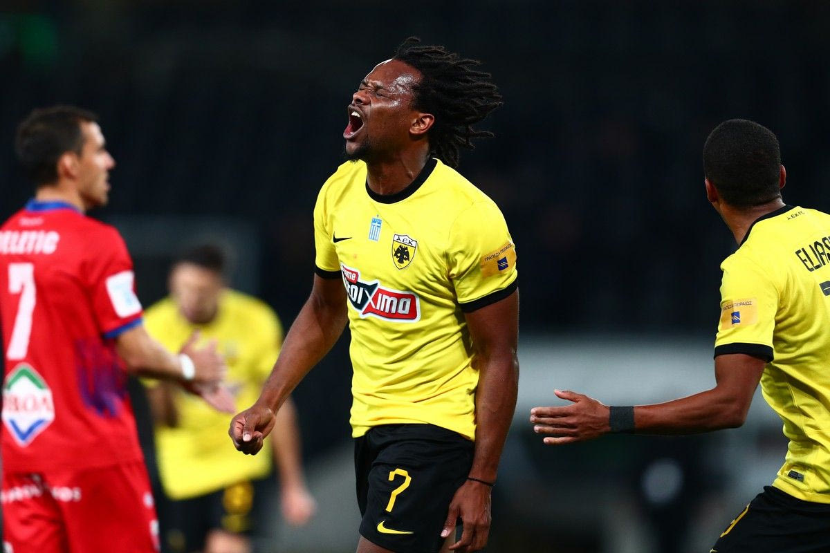 Ο Γκαρσία πανηγυρίζει το 1-0 στο ΑΕΚ - Βόλος