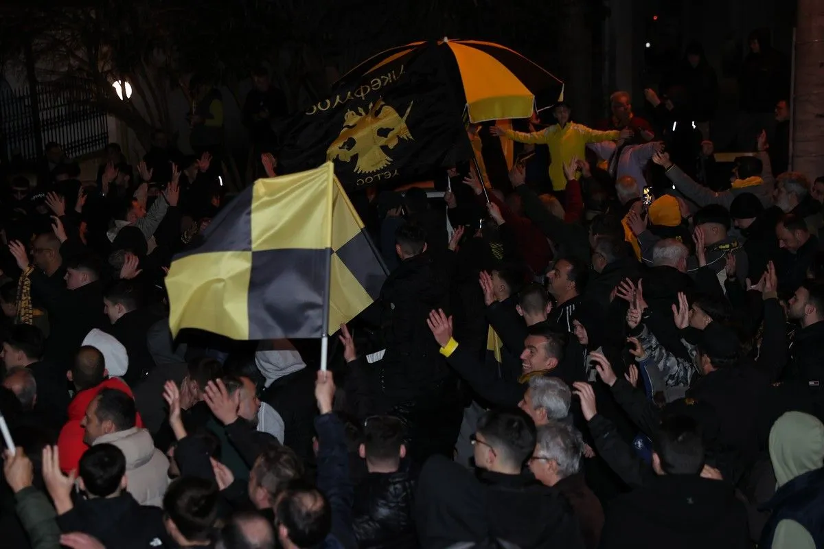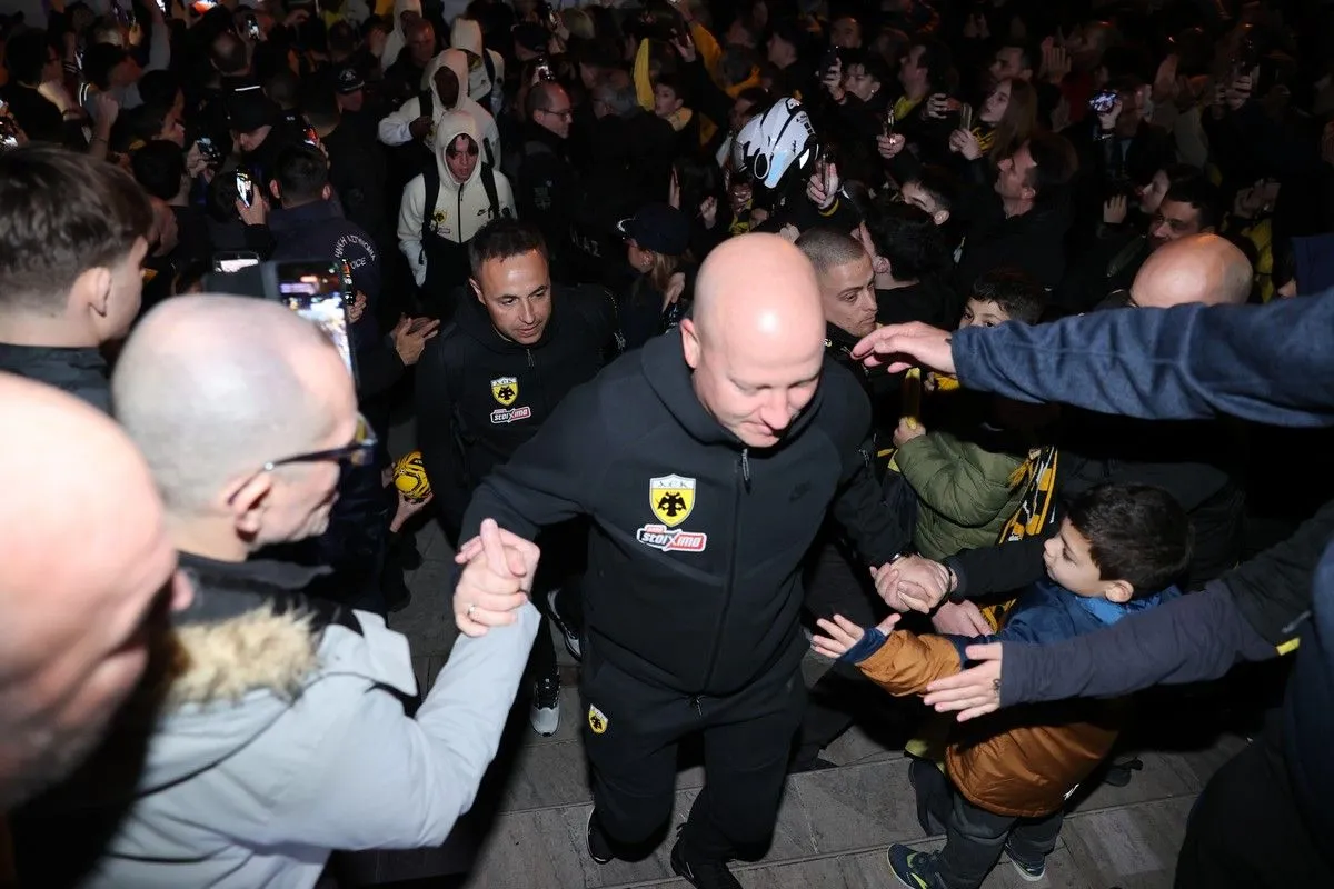 Οι φίλοι της ΑΕΚ αποθέωσαν τον Μάρκο Νίκολιτς και τους παίκτες του κατά την άφιξη της αποστολής στο ξενοδοχείο που θα καταλύσει στις Σέρρες.