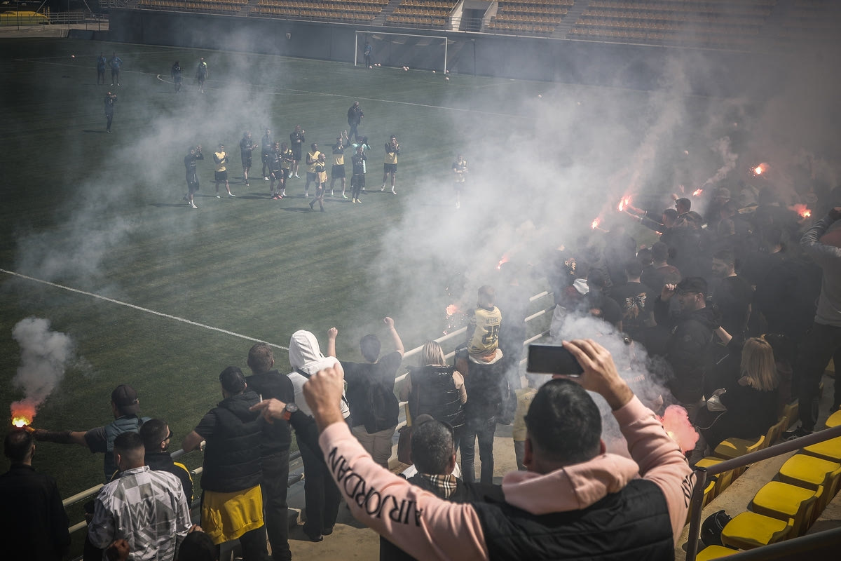 Μετά το τέλος της προπόνησης, οι ποδοσφαιριστές του Ματίας Αλμέιδα κατευθύνθηκαν προς το μέρος, όπου βρίσκονταν οι εκατοντάδες φίλοι της Ένωσης στο “Σεραφείδειο” και τους χειροκροτήσαν.
