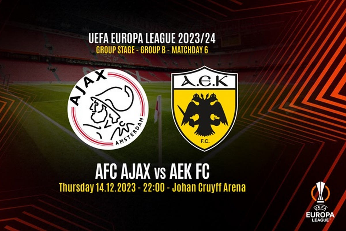 Η ΑΕΚ αντιμετωπίζει τον Άγιαξ στις 12 Δεκεμβρίου (22:00) για την τελευταία αγωνιστική των ομίλων του Europa League. Η Ένωση ενημέρωσε πως ξεκινάει η διαδικασία παραλαβής των εισιτηρίων για το εκτός έδρας παιχνίδι.