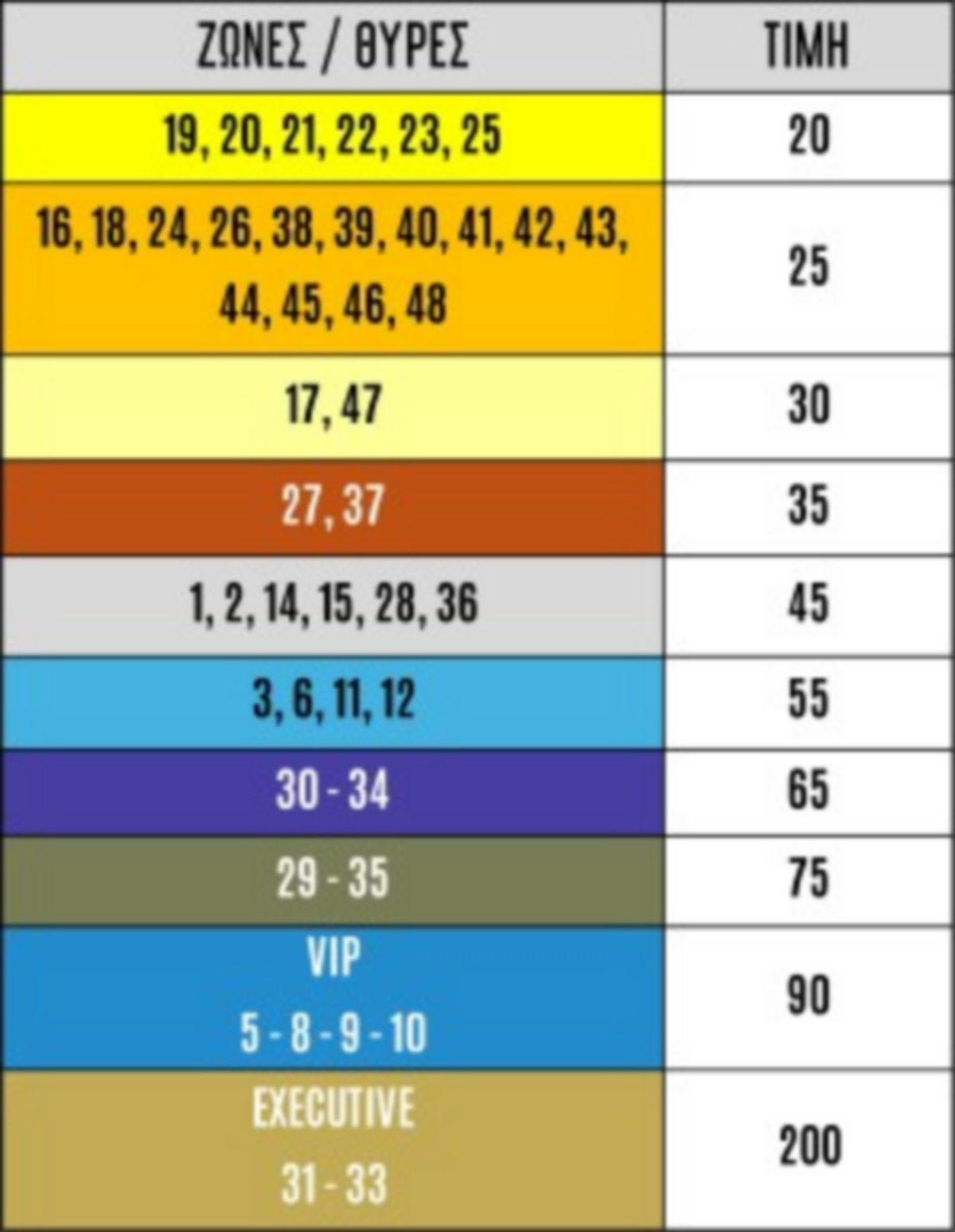 Αναλυτικά οι τιμές των εισιτηρίων ανά θύρα: