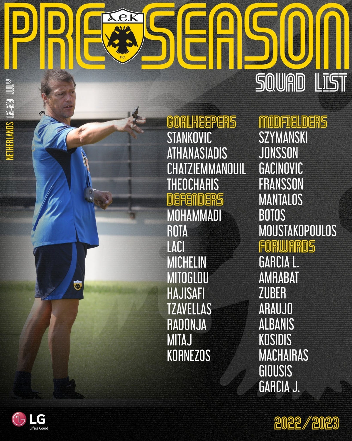 Αναλυτικά η αποστολή: Στάνκοβιτς, Αθανασιάδης, Χατζηεμμανουήλ, Θεοχάρης, Μοχαμάντι, Ρότα, Λάτσι, Μισελέν, Μήτογλου, Χατζισαφί, Τζαβέλλας, Μιτάι, Κορνέζος, Σιμάνσκι, Γιόνσον, Γκατσίνοβιτς, Φράνσον, Μάνταλος, Μπότος, Μουστακόπουλος, Λιβάι Γκαρσία, Άμραμπατ, Τσούμπερ, Αραούχο, Αλμπάνης, Κοσίδης, Μαχαίρας, Γιούσης, Τζούντα Γκαρσία.