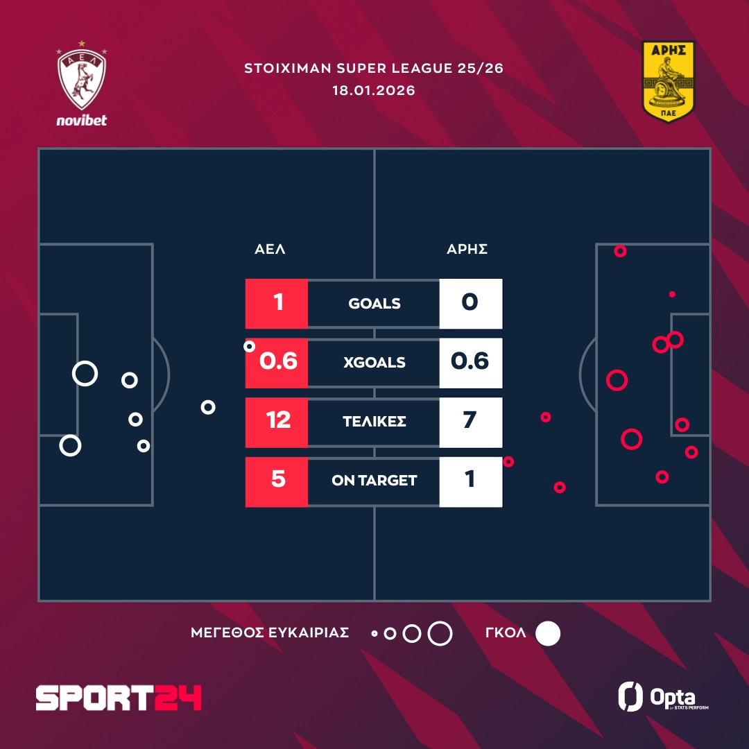 Η ΑΕΛ Novibet λύγισε με 1-0 τον Άρη στη Λάρισα για τη 17η αγωνιστική της Stoiximan Super League και επέστρεψε στις επιτυχίες έπειτα από σχεδόν τρεις μήνες.