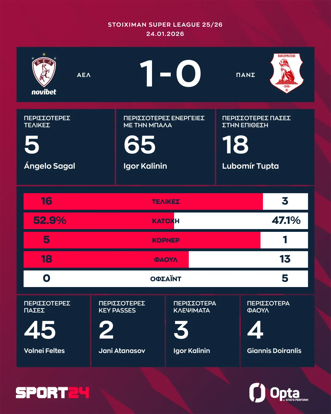 ΑΕΛ Novibet – Πανσερραϊκός 1-0: Οι βυσσινί πήραν το ντέρμπι παραμονής και βύθισαν ακόμα περισσότερο την ομάδα του Σαραγόσα