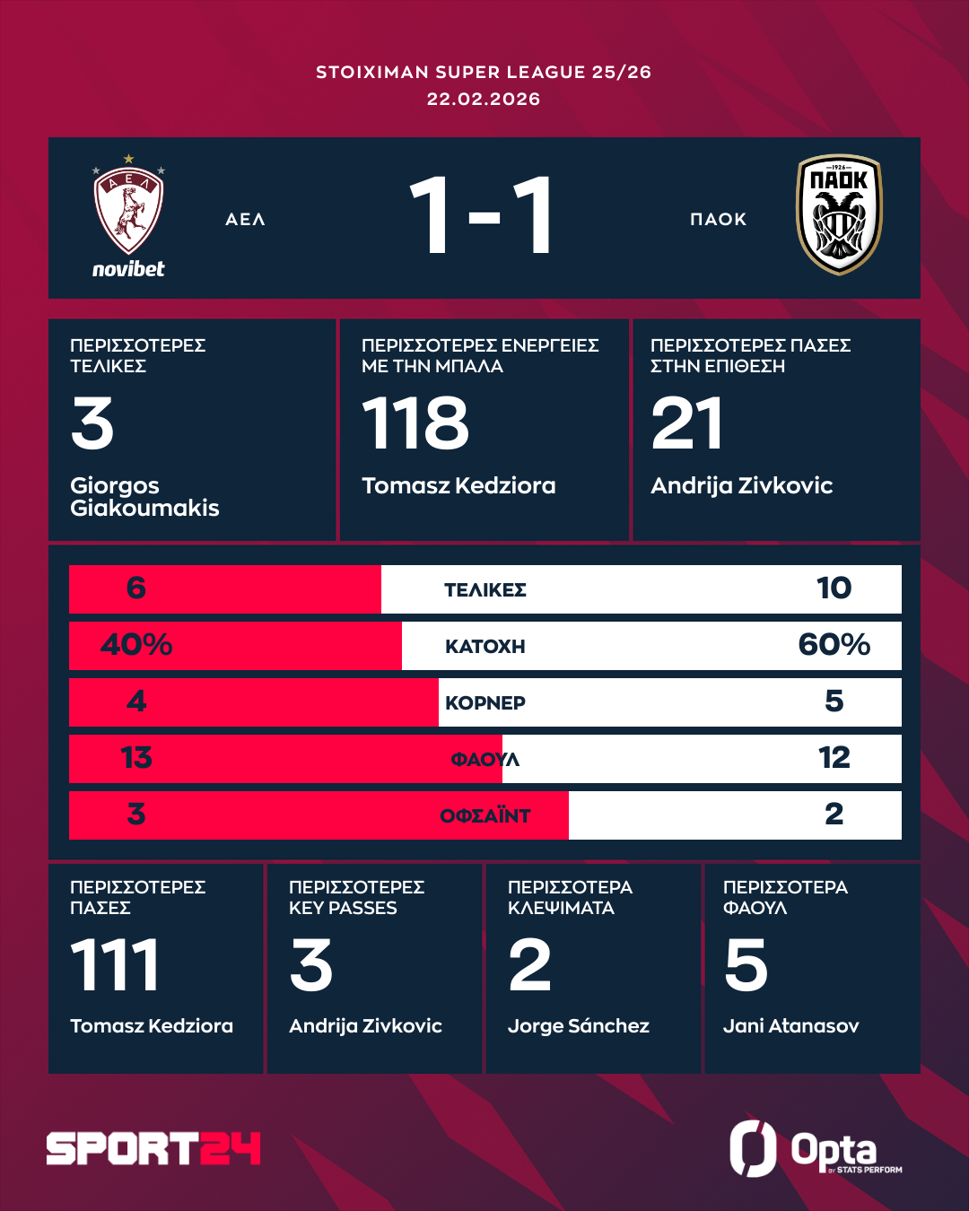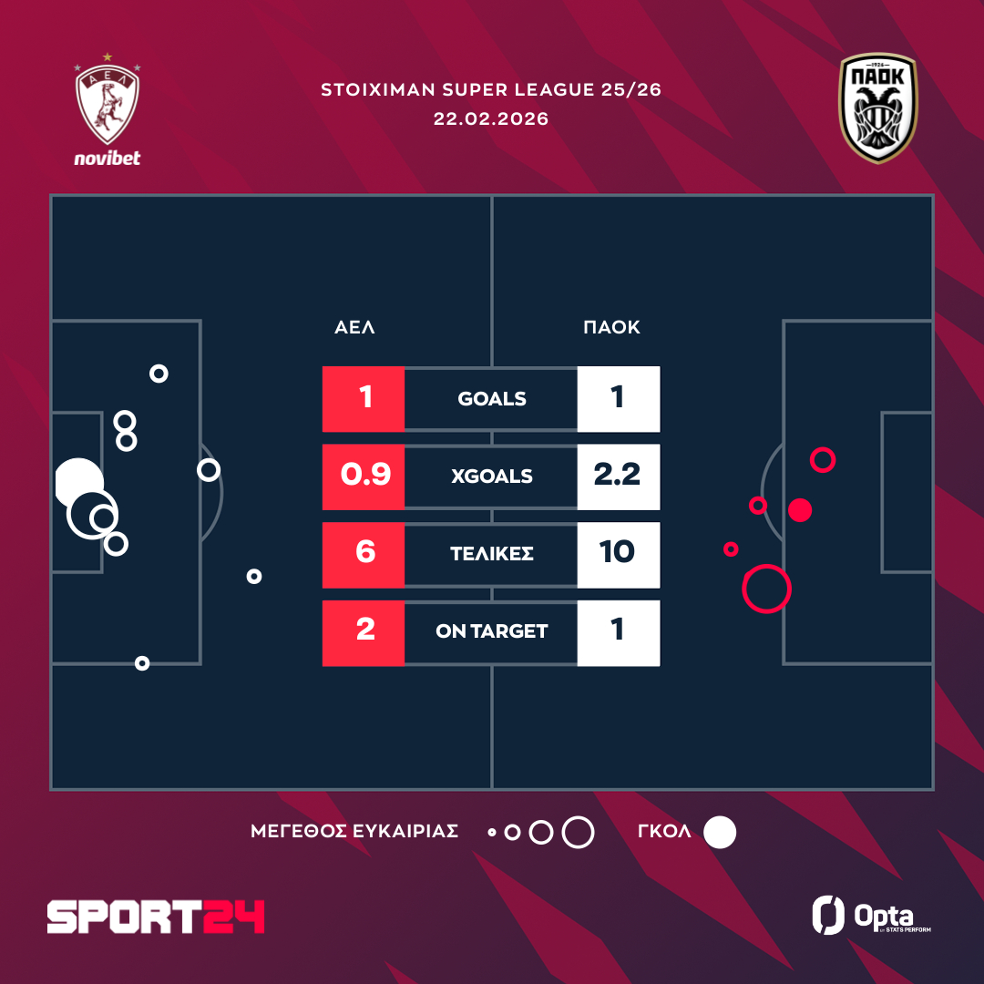 ΑΕΛ Novibet – ΠΑΟΚ 1-1: Ο Δικέφαλος κόλλησε απέναντι στους μαχητικούς βυσσινί και έχασε νέο έδαφος