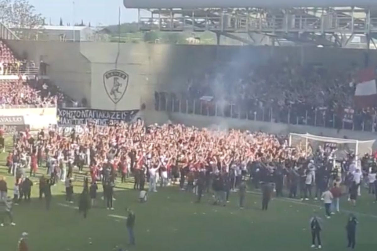 Το σφύριγμα της λήξης σηματοδότησε το τέλος της αναμονής τεσσάρων χρόνων για το πάρτι των φίλων της ΑΕΛ και την αποτέλεσε το έναυσμα για το πάρτι ανόδου στη Λάρισα.