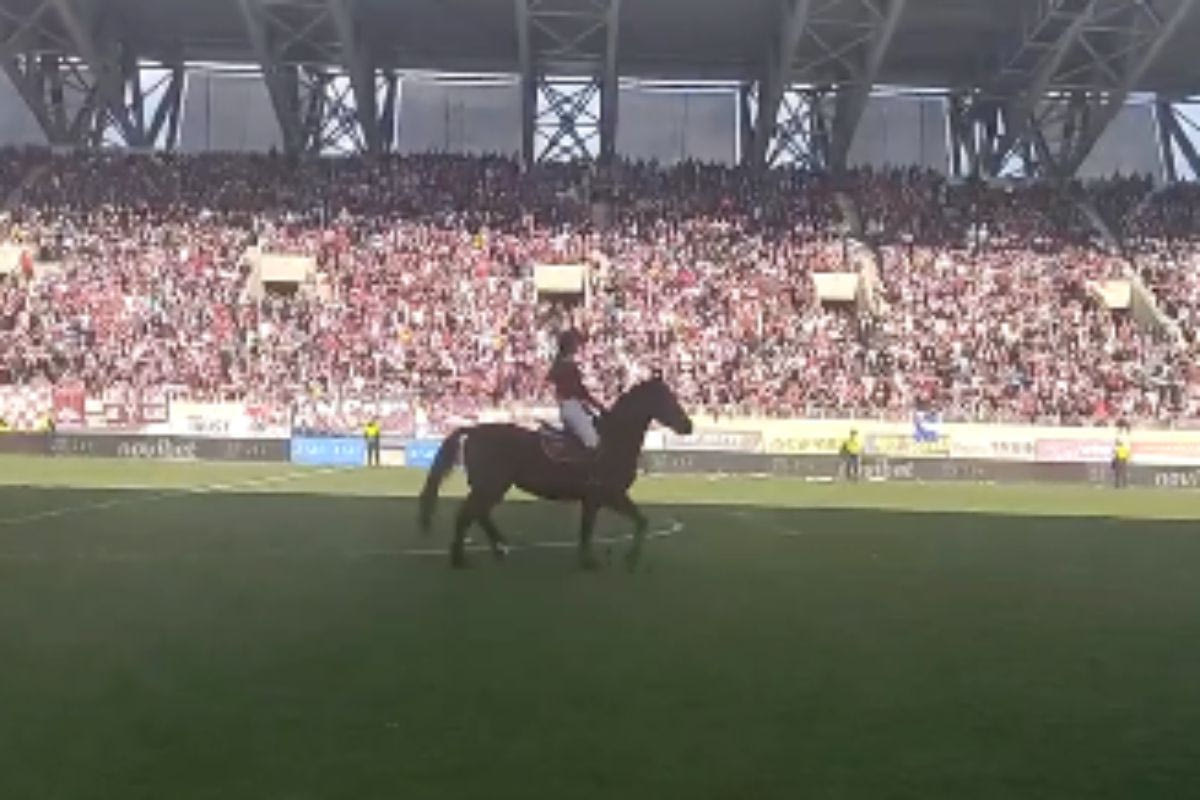 Το “αλογάκι” της ΑΕΛ, το σύμβολο της ομάδας, δεν θα μπορούσε να λείπει από τη φιέστα ανόδου των βυσσινί. Η κάμερα του SPORT24 αποτύπωσε τα στιγμιότυπα από τον γύρο του θριάμβου στην AEL FC Arena, εν μέσω αποθέωσης από τον κόσμο που μαγνήτισε το βλέμμα του στον αγωνιστικό χώρο.