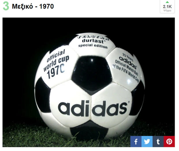 Κομψή και ιδιαίτερη, δεν είναι η πρώτη ούτε η τελευταία που μας εντυπωσιάζει. Έχουμε δει πολλές στο παρελθόν και αρκετές από αυτές τις νοσταλγούμε. Το Sport24.gr απεύθυνθηκε στους αναγνώστες του για την ομορφότερη μπάλα στην ιστορία των Μουντιάλ και τα αποτελέσματα βγήκαν.