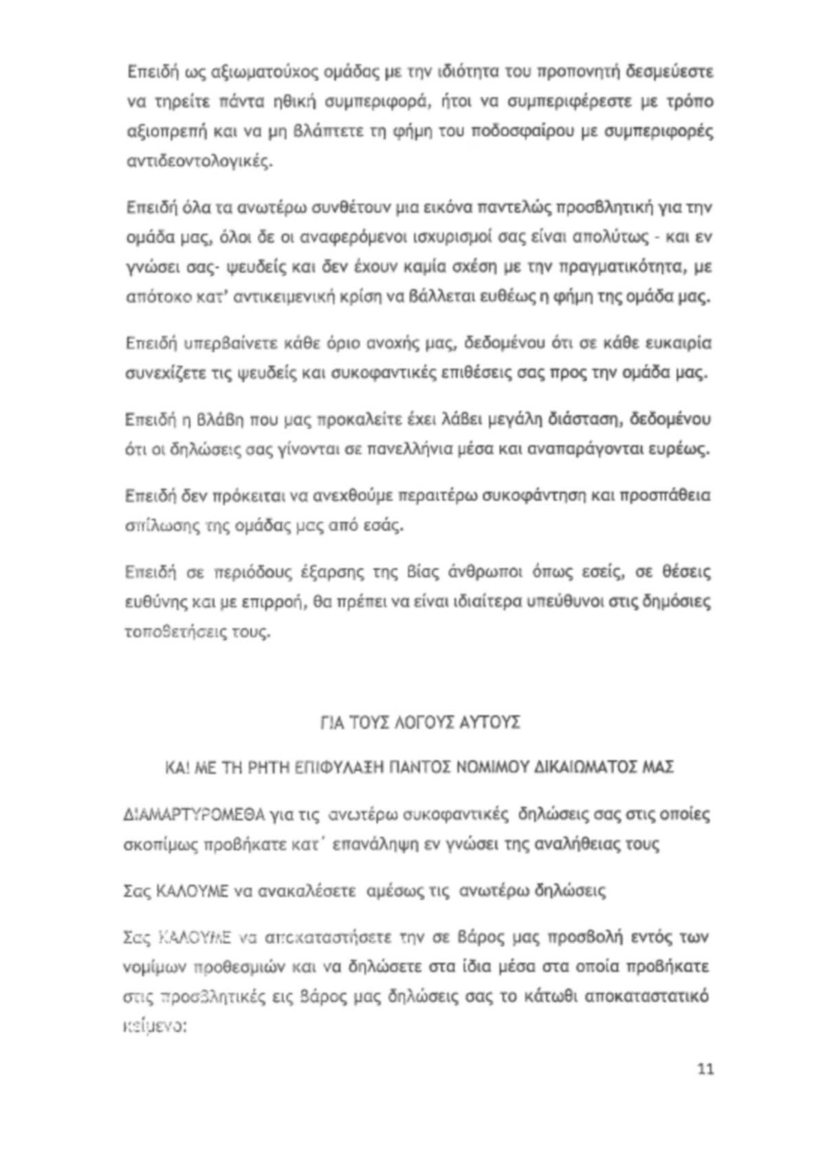Διαβάστε τι αναφέρει το 12σελιδο εξώδικο το οποίο είναι γραμμένο και στα ρουμάνικα και τι ζητάει το τριφύλλι από τον προπονητή του ΠΑΟΚ.