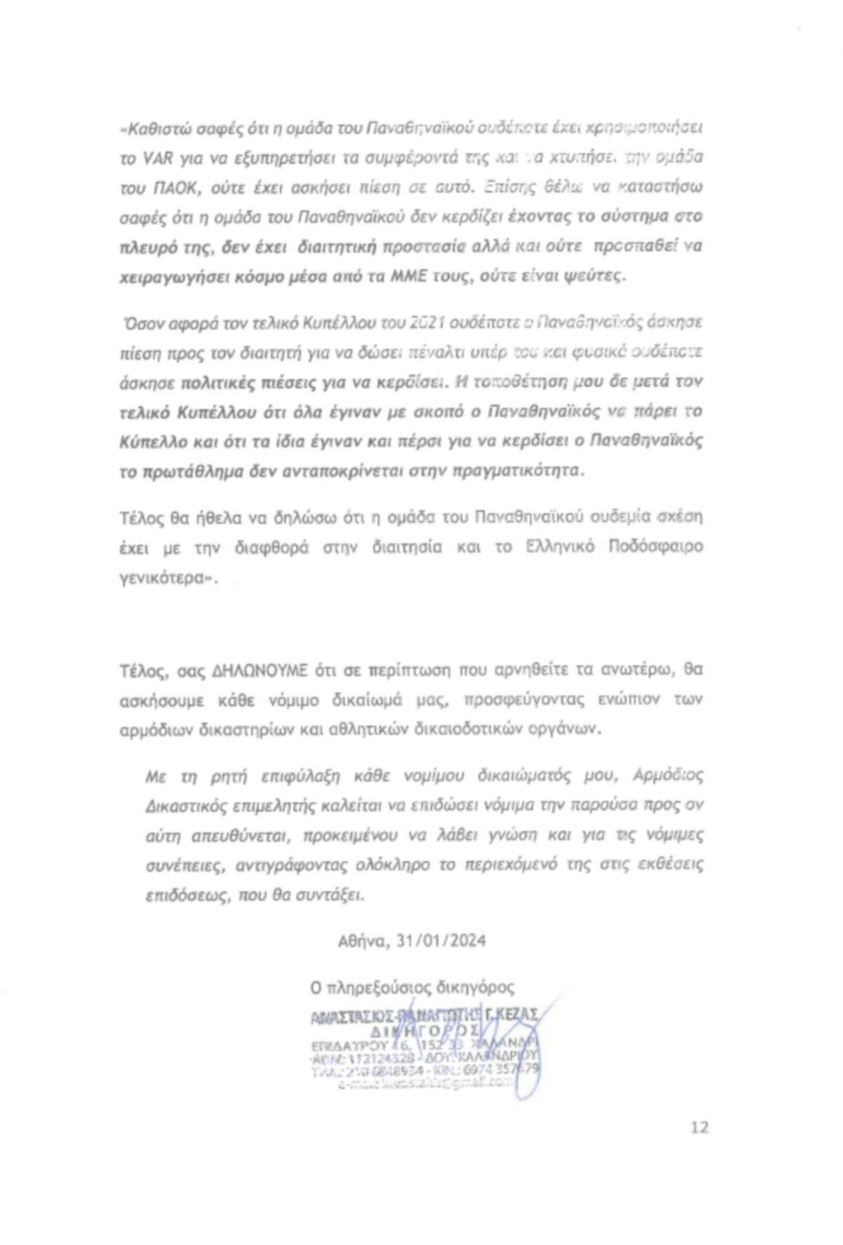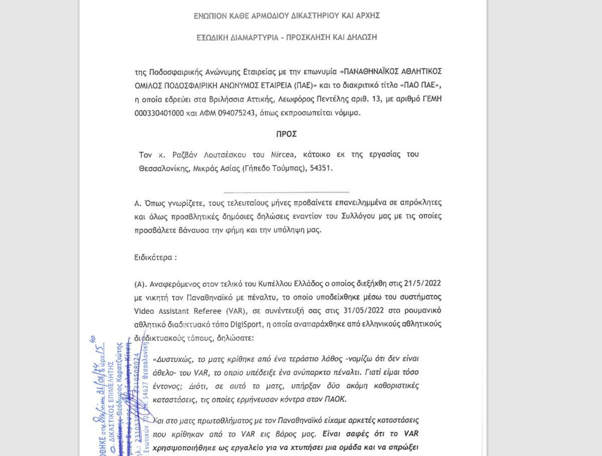 Ο Παναθηναϊκός με εξώδικο προς τον Ραζβάν Λουτσέσκου ζητά από τον Ρουμάνο τεχνικό να ανακαλέσει τις δηλώσεις του. Δείτε το 12σελιδο έγγραφο που απέστειλε η πράσινη ΠΑΕ και τι ζητά το τριφύλλι.