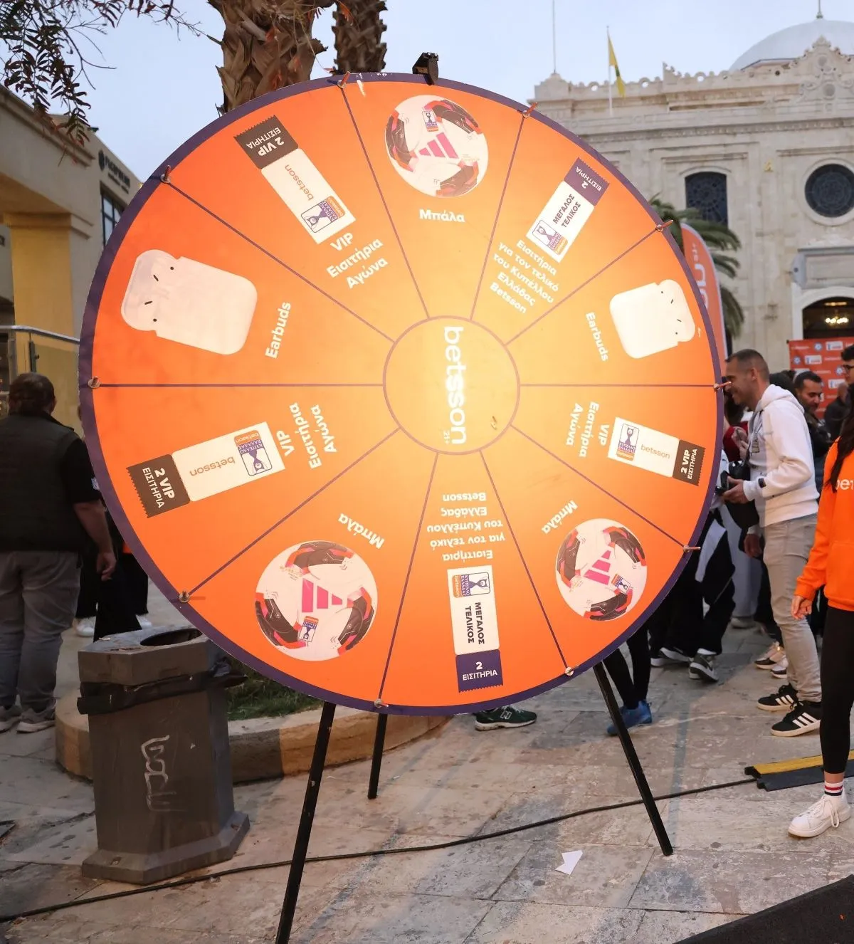 Η Fan Zone την οποία εγκατέστησε η Betsson μπροστά από τον Ιερό Ναό του Αγίου Τίτου εξελίχθηκε σε έναν αθλητικό προσκυνηματικό χώρο από τον οποίο παρέλασαν εκατοντάδες φίλαθλοι όλων των ηλικιών για να δοκιμάσουν τις γνώσεις και τις δεξιότητες τους, να διασκεδάσουν και να κάνουν το δικό τους απαραίτητο «ζέσταμα» ενόψει του μεγάλου τελικού