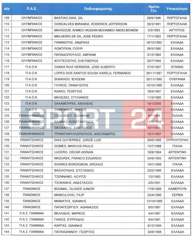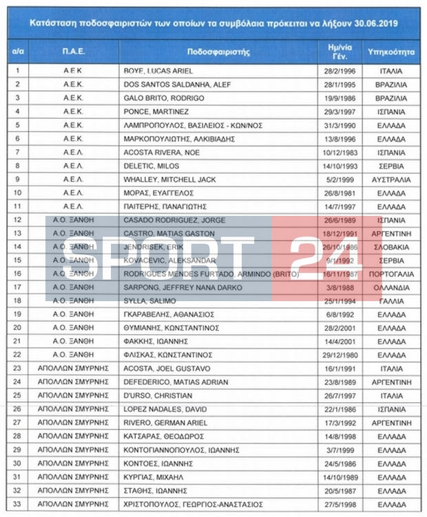 Το Sport24.gr παρουσιάζει τη λίστα με τους 144 ποδοσφαιριστές της Super League που μένουν ελεύθεροι στις 30 Ιουνίου 2019 και μπορούν να υπογράψουν όπου θέλουν.