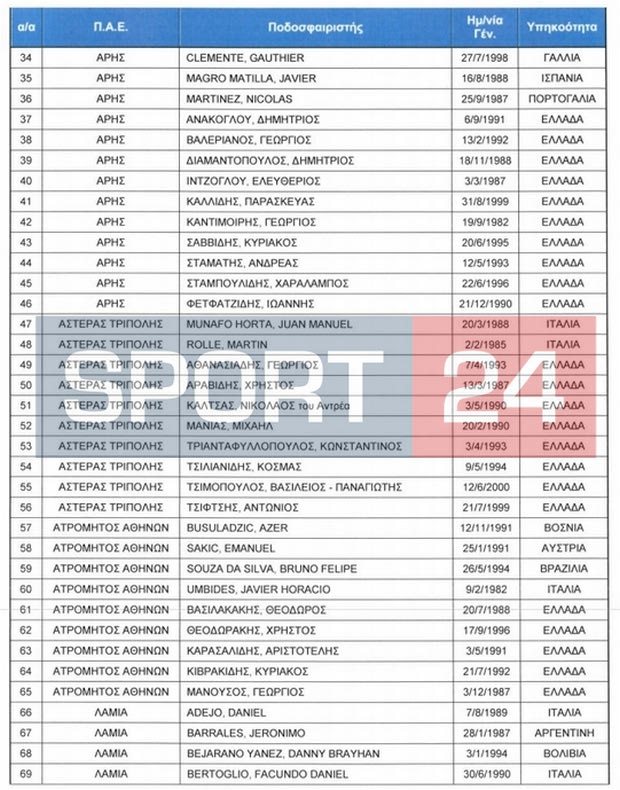 | 69. | ΦΑΚΟΥΝΤΟ ΜΠΕΡΤΟΓΛΙΟ | ΛΑΜΙΑ |