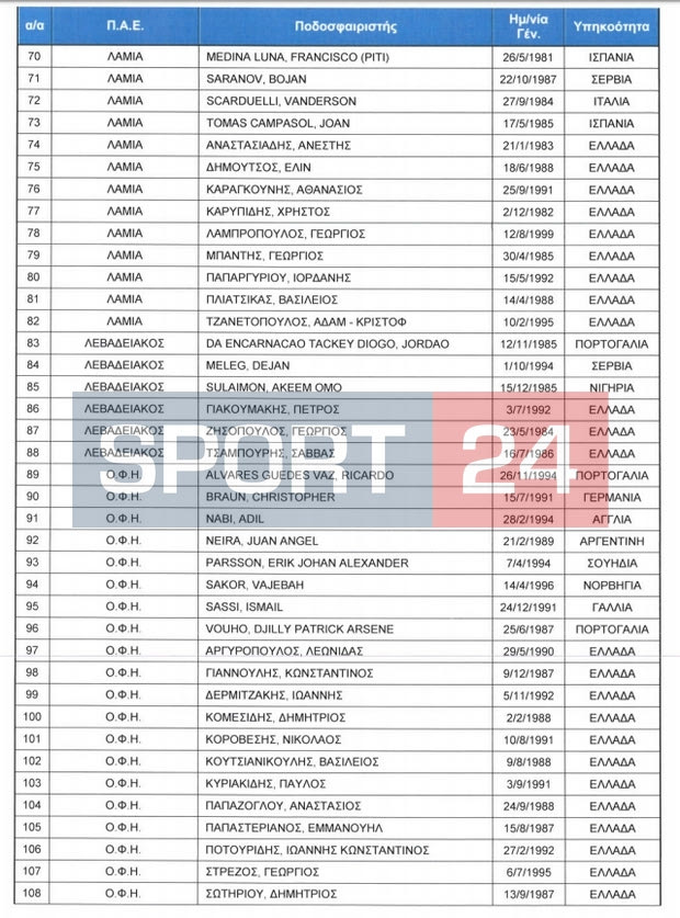 | 108 | ΔΗΜΗΤΡΗΣ ΣΩΤΗΡΙΟΥ | ΟΦΗ |