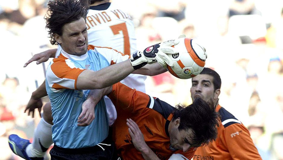 Ο Κοστάνσο μπλοκάρει τη μπάλα πάνω από τον Σαριέγκι σε αγώνα της Αλαβές με τη Βαλένθια (2005-06)