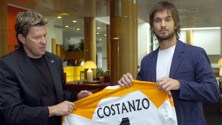 Ο Κοστάνσο σε φωτογράφηση με την επίσημη ενδυμασία της Αλαβές. Δεξιά ο προπονητής του, Τσούτσι Κος (2005-06)
