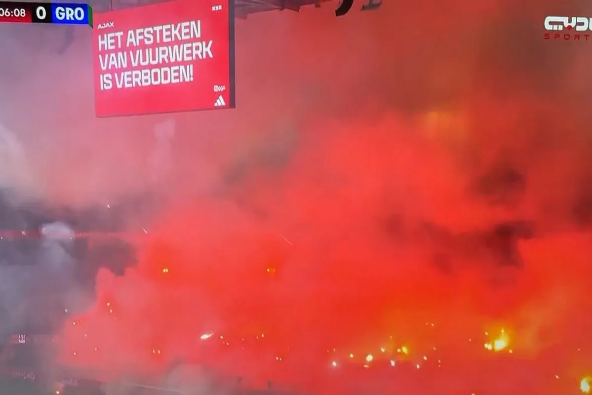Στο 5ο λεπτό διακόπηκε η αναμέτρηση ανάμεσα στον Άγιαξ και την Χρόνινχεν στη Γιόχαν Κρόιφ Αρένα. Οπαδοί των γηπεδούχων άναψαν πλήθος καπνογόνων, για να τιμήσουν την μνήνη συνοπαδού τους.