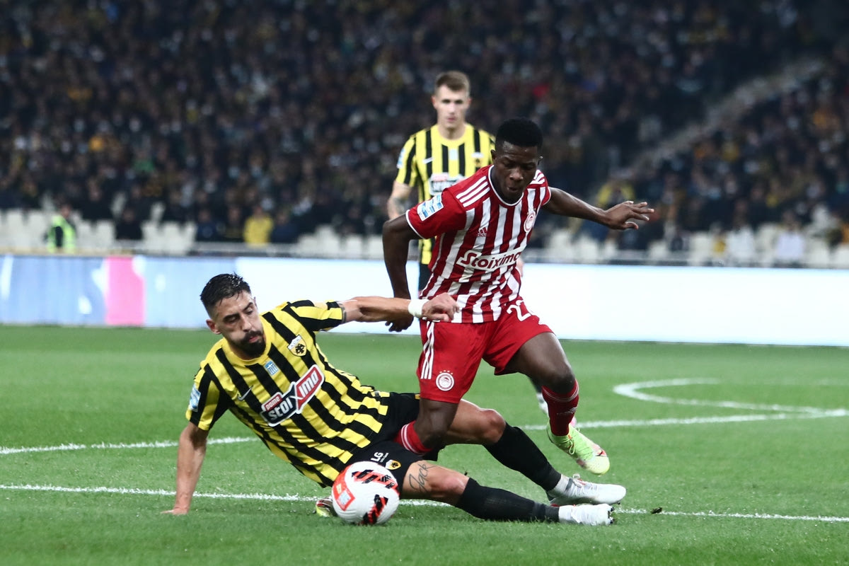 Ο Ολυμπιακός επικράτησε της ΑΕΚ με 3-2 στο ντέρμπι της δέκατης αγωνιστικής της Super League Interwetten, με τον Αγκιμπού Καμαρά να πετυχαίνει το πρώτο γκολ των ερυθρόλευκων στα 57 δευτερόλεπτα.