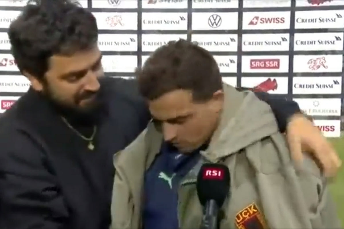 Ένας εισβολέας οπαδός μπήκε στο γήπεδο την ώρα που ο Σερντάν Σακίρι έκανε δηλώσεις και του φόρεσε ένα μπουφάν με το λογότυπο του UCK.