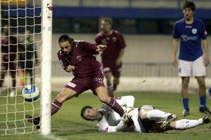 | Ο Γκούγκα, από δεξιά σεντράρει και ο Αλωνεύτης βρίσκει την μπάλα και με πλασέ ισοφαρίζει. | ||