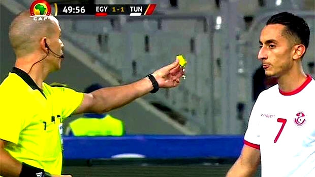 Ο Τυνήσιος αμυντικός μέσος, Φερζανί Σασί, διαμαρτυρήθηκε έντονα στο διαιτητή της αναμέτρησης με την Αίγυπτο, Βίκτορ Γκόμες, κι εκείνος του έδωσε τη σφυρίχτρα για να τον... ηρεμήσει.
