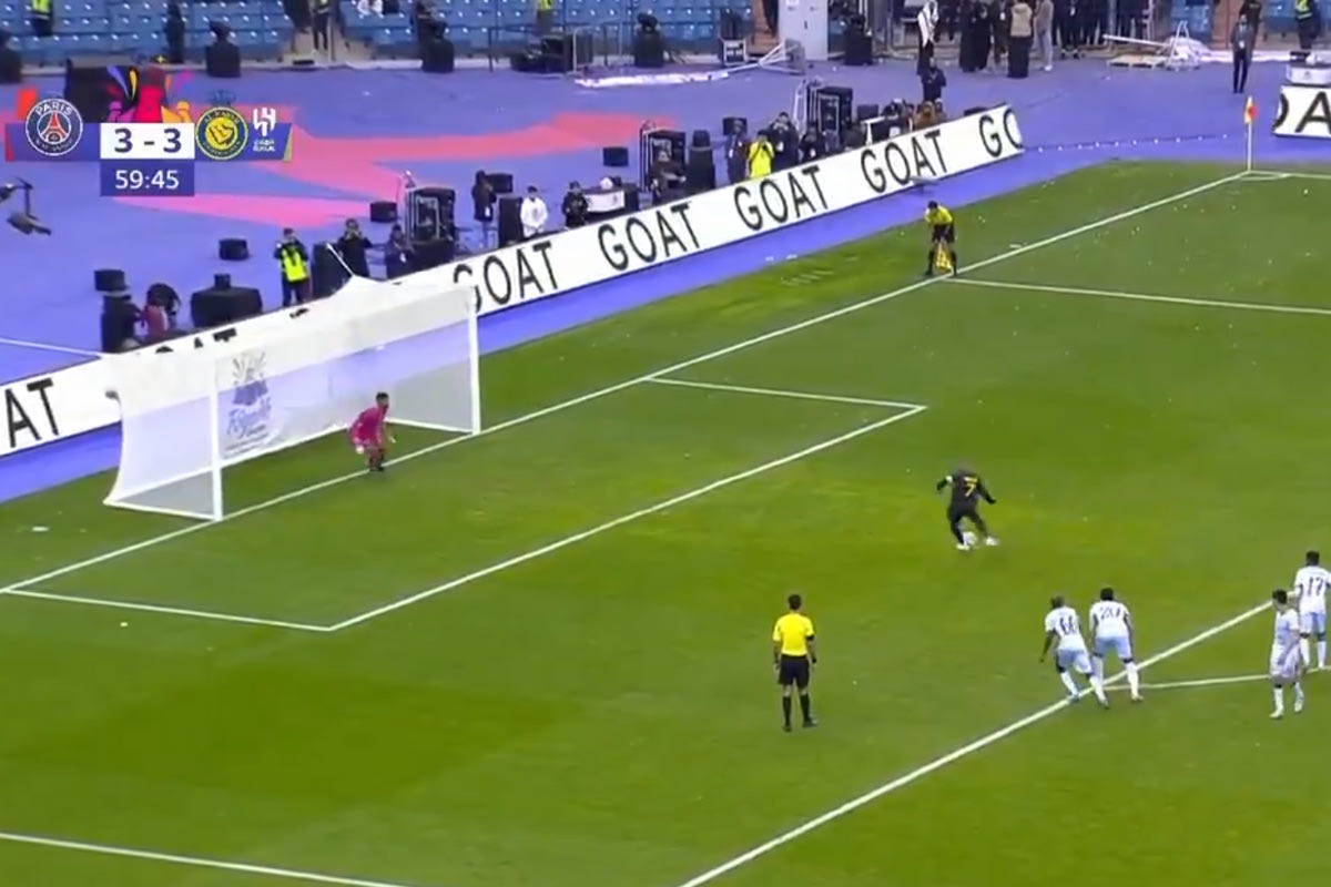 Η Παρί Σεν Ζερμέν κέρδισε πέναλτι, το οποίο μετέτρεψε σε γκολ ο Κιλιάν Εμπαπέ για το 4-3 της Παρί Σεν Ζερμέν απέναντι στην μικτή Αλ Νασρ/Αλ Χιλάλ.