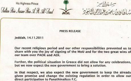 Το Sport24.gr είχε γράψει από το βράδυ της Κυριακής για τις προθέσεις του Πρίγκιπα Αλ Σαούντ, που είχε αποφασίσει να δώσει πριμ σε περίπτωση νίκης στο ντέρμπι του Σαββάτου .