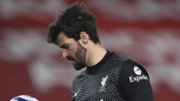 Ο τερματοφύλακας της Λίβερπουλ Άλισον Μπέκερ στο ματς με την Έβερτον
