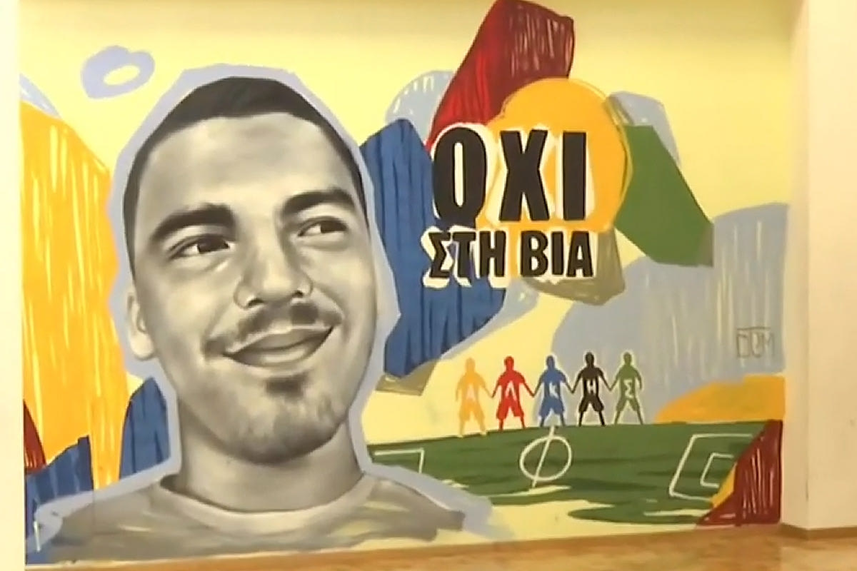 Τον χώρο του γυμναστηρίου κοσμεί επίσης ένα γκράφιτι με το πρόσωπο του Άλκη στο οποίο είναι γραμμένο το μήνυμα “ΟΧΙ ΣΤΗ ΒΙΑ”, ενώ κατά τη διάρκεια της εκδήλωσης, που έγινε παρουσία ποδοσφαιριστών του Άρη και του ΠΑΟΚ, ήταν αναρτημένο ένα πανό με το μήνυμα “Ποτέ ξανά όλοι μαζί για ένα καλύτερο αύριο”.