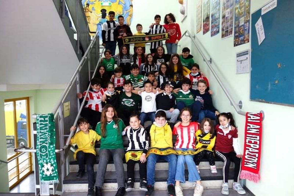 Οι εκπαιδευτικοί αλλά και οι μαθητές φωτογραφήθηκαν με φανέλες των αγαπημένων τους ομάδων και ήθελαν με αυτό τον τρόπο να περάσουν ένα όμορφο μήνυμα.
