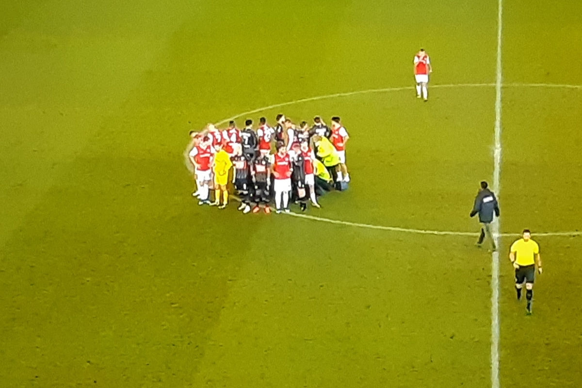 Λίγο πριν αποχωρήσει από τον αγωνιστικό χώρο ο Ντοστ και ενώ ήταν πάνω στο φορείο, ύψωσε το χέρι του, θέλοντας να στείλει ένα μήνυμα ότι είναι καλύτερα στην υγεία του. Μετά από αυτό το γεγονός ανακοινώθηκε ότι ο αγώνας διεκόπη.