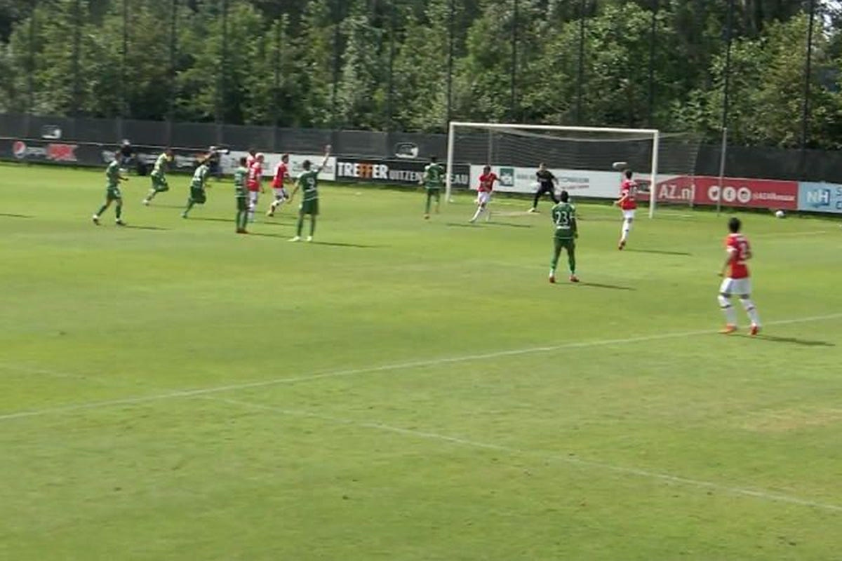 Η Άλκμααρ άνοιξε το σκορ στο 12ο λεπτό της φιλικής αναμέτρησης με τον Παναθηναϊκό, με τον Κάρλσον να νικάει τον Διούδη με εντυπωσιακό ανάποδο τακουνάκι μέσα από τη μεγάλη περιοχή.