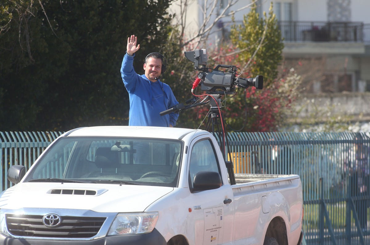 Αλμωπός – Ηρακλής: Κάμερα της ΕΡΤ στήθηκε σε φορτηγάκι για την μετάδοση του αγώνα