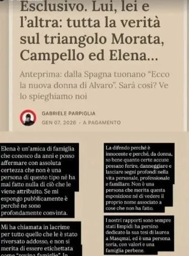Στο προσκήνιο βρέθηκε ξανά η σχέση της Άλις Καμπέλο με τον Άλβαρο Μοράτα, μετά από ιταλικά δημοσιεύματα που έκαναν λόγο για τρίτο πρόσωπο. Η Ιταλίδα influencer, ωστόσο, έσπευσε να διαψεύσει τα σενάρια, υπερασπιζόμενη ανοιχτά μια γυναίκα που, όπως τόνισε, στοχοποιήθηκε άδικα.