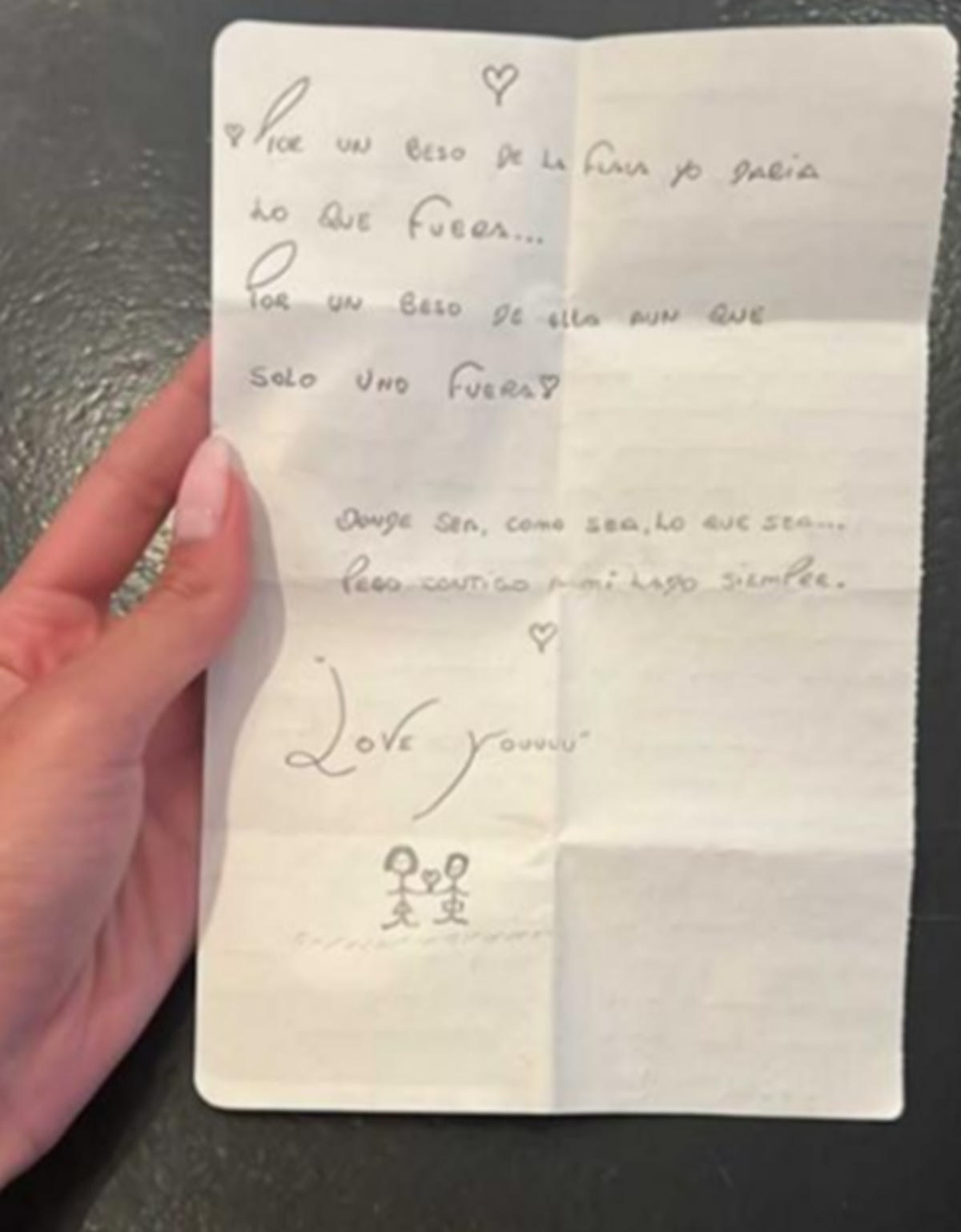 “Και τι δεν θα’ δινα για ένα φιλί από το αδύνατο κορίτσι, ακόμη κι αν ήταν μόνο ένα. Οπουδήποτε, οπωσδήποτε, με κάθε τρόπο… Με σένα στο πλάι μου πάντα. Σε αγαπώ” γράφει ο Βραζιλιάνος και συνοδεύει το γράμμα με μία ζωγραφιά με δυο άτομα να κρατιούνται χέρι – χέρι.