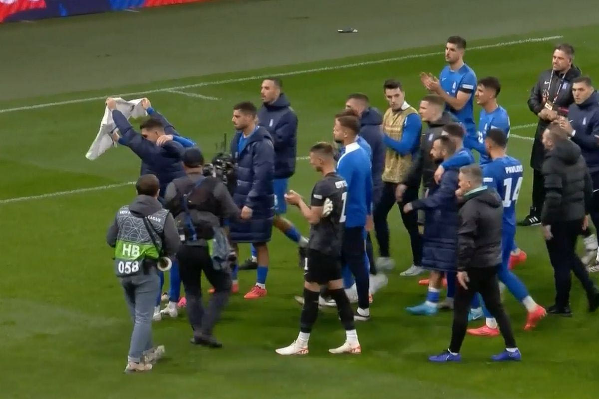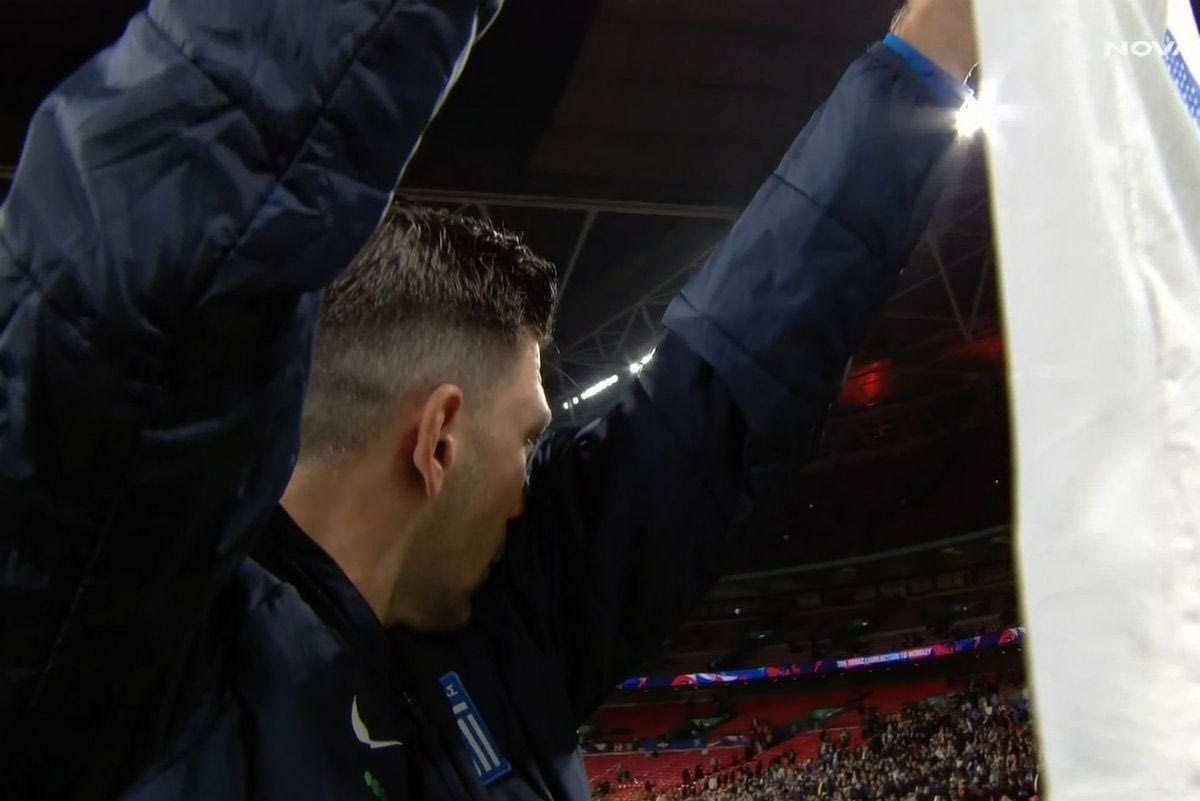 Αγγλία – Ελλάδα: Λύγισε ο Μπακασέτας στο φινάλε υψώνοντας τη φανέλα του Μπάλντοκ στον ουρανό του Γουέμπλεϊ