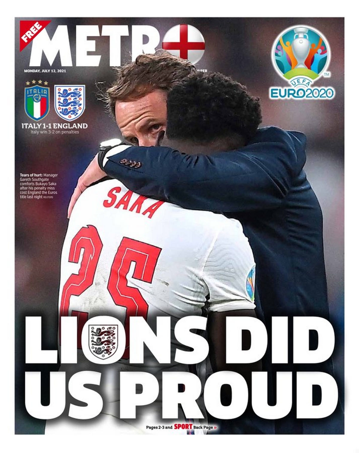 Από την άλλη η Metro δήλωσε περήφανη για την εθνική Αγγλίας: “Τα λιοντάρια μας έκαναν περήφανους” αναφέρει το πρωτοσέλιδο.