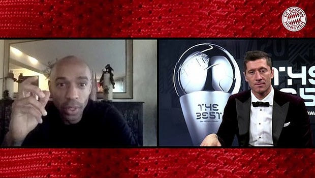 Ο Τιερί Ανρί μίλησε μέσω video-κλήσης στον Ρόμπερτ Λεβαντόβσκι και τον αποθέωσε για το ότι αναδείχτηκε κορυφαίος παίκτης στον κόσμο μπροστά από Ρονάλντο και Μέσι, με τον Πολωνό να εξομολογείται πως μικρός ήθελε να μοιάσει στον Γάλλο (VIDEO).